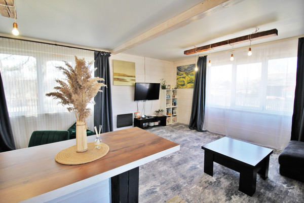 Дом расположен в уединенном месте. Соседей – минимум. За участком есть р. Кукуштанка, возможно сделать свой пруд. На участке вокруг дома растут ели, сосны, березы, вишня - очень красивый живописный вид, душевное место. Высажена смородина.1 этаж – прихожая + кухня-гостиная + гардеробная + санузел + котельная2 этаж – детская + спальня + доп. комната около 9 кв.м.