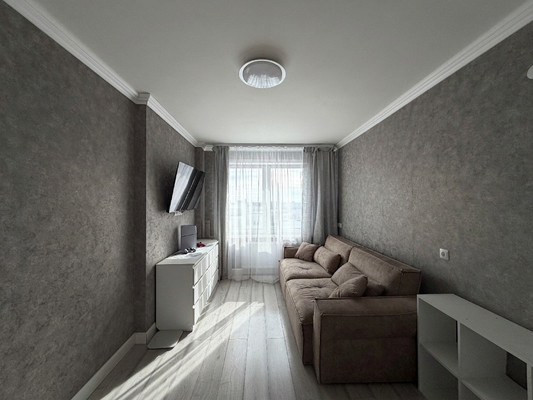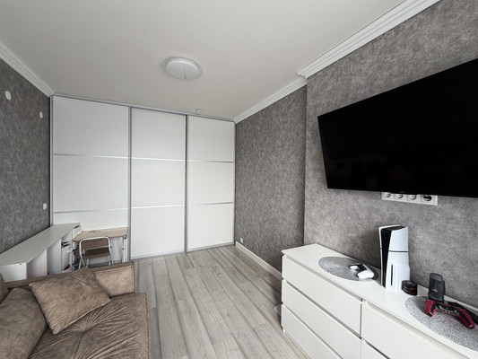 Стильный интерьер: Ремонт выполнен в нейтральных, спокойных тонах. Это универсальное решение, которое легко освежить или дополнить элементами декора на ваш вкус. На полу — качественный ламинат и практичная плитка.